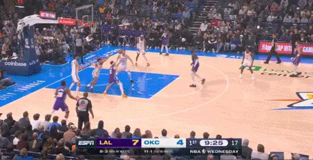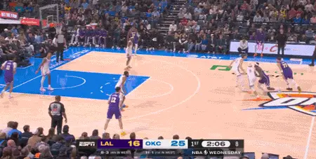 首節戰罷,雷霆30-18領先湖人12分。湖人單節6次失誤,雷霆只有1次失誤。本賽季湖人還沒遇到過這種防守強度,里夫斯單節3中1僅得2分1助攻1失誤。第二節湖人的進攻依然沒有起色,單節僅得20分,雷霆單節狂轟40分。