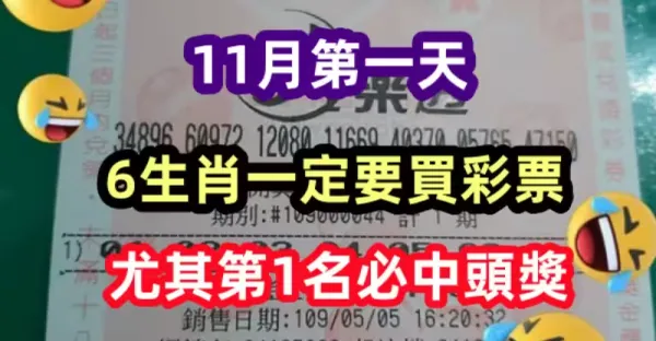 11月第一天,6生肖一定要買彩票,尤其第1名必中頭獎!!