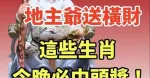 今天12月13日: 地主爺送橫財,這些生肖今晚必中頭獎