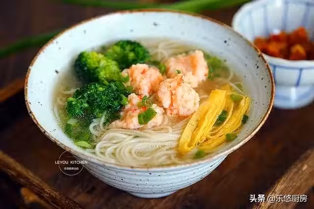 第一步:準備食材。鮮蝦幾隻、麵條適量、西蘭花適量、香蔥適量、雞蛋2個。