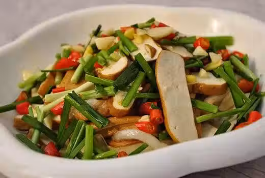 100g香乾、500克韭菜、適量油、適量鹽、少許洋蔥、5顆花椒、適量生抽、適量胡椒粉、少許雞精、適量香油。