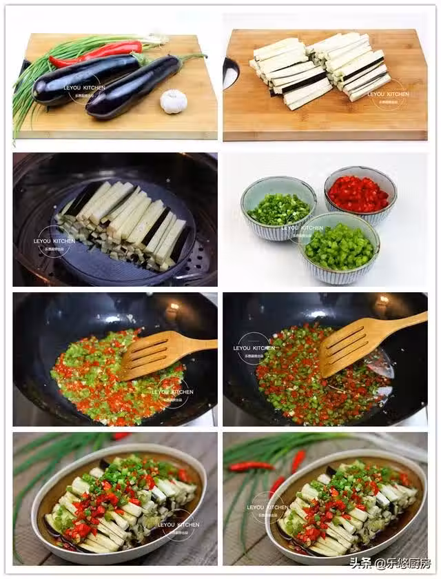 第七步:待料汁晾涼後澆到茄條上,再撒上少許香蔥末,即可上桌開動,超開胃的哦。