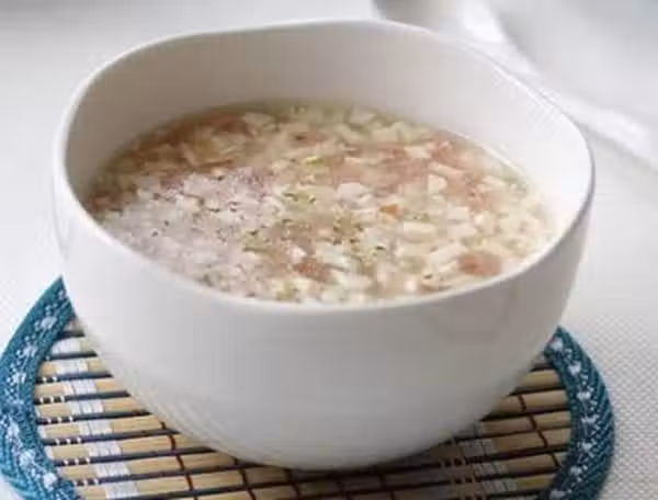 7、水開後,倒入澱粉水,攪拌開來,加上少許的鹽,和蔥薑粉即可