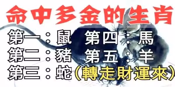 飛來橫財源源不斷!命中多金的5大生肖!上榜者必轉,財運跟著來! !!