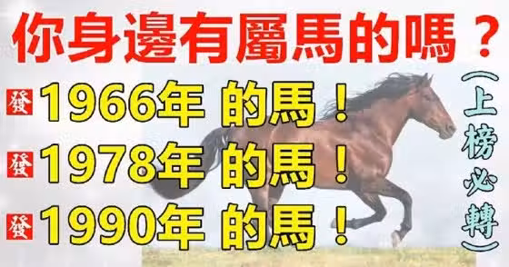 你身邊有屬馬的嗎?1966年,1978年,1990年的馬,一生一世的命運~