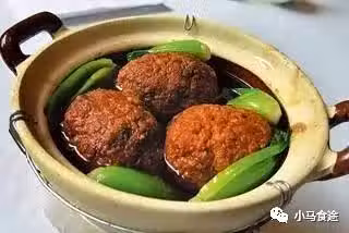 2. 將凈砂鍋加入清水上火燒開,放入十字頭丸,蓋上菜葉,用小火燜煮一個半小時左右,放入菜心略燒一會兒即可。