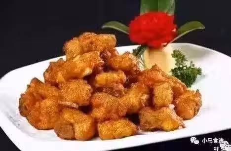1.將豬大排敲松,去筋,沖水,瀝干水分,加入鹽、大蒜水、料酒、白糖、花生醬、味精腌制2小時待用;雞蛋液加生粉調成炸糊,將腌好的大排裹勻炸糊,入五成熱油溫炸至九成熟,撈出,入六成熱油溫炸至外皮酥脆,撈出瀝油,裝盤;