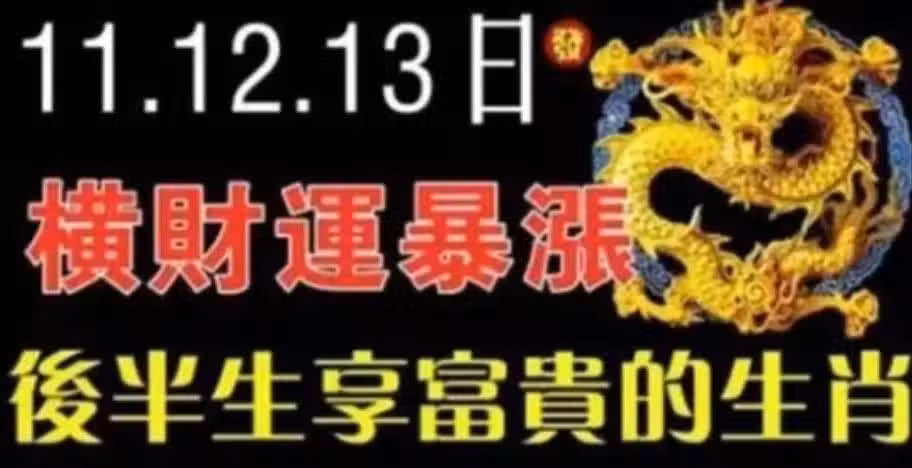 10月11,12,13號橫財運暴漲,後半生享富貴的生肖