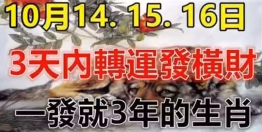 【10月14.15.16日】三天內轉運發橫財的生肖快來接。