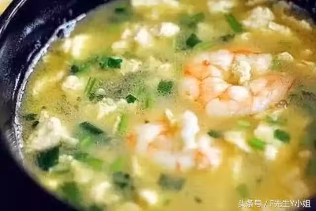 3、鍋中加入適量清水,大火煮沸後放入蝦仁煮10分鐘,倒入蛋液、加蔥末、薑末、鹽和香油調味即可。
