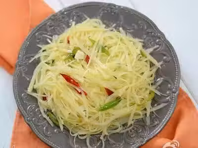3、把土豆絲用清洗三遍,撈出備用。