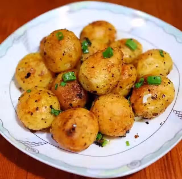 小土豆、蔥、姜、花椒粉、辣椒麵、孜然粉、鹽、油、白芝麻