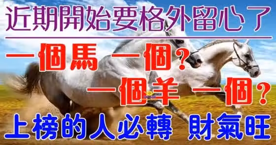 近期開始要格外留心了,一個馬,一個?,一個羊,一個?必須轉啊!