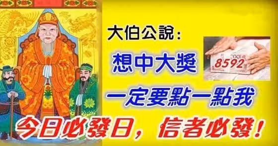 土地公說,想中大獎,一定要點一點我,今晚一定發!
