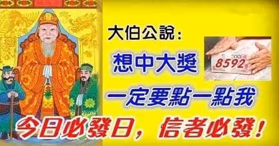 土地公說,想中大獎,一定要點一點我,今晚一定發!