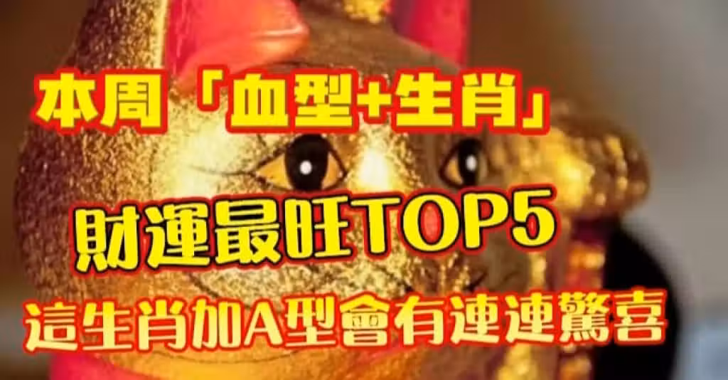 本週「血型+生肖」財運最旺TOP5 這生肖加A型會有連連驚喜