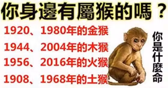 猴年出生的人總體上五行屬金,但是在猴年的六十甲子干支組合當中又有不同的五行,所以屬猴人也有五行。不同命格的屬猴人當然也有屬於自己的命運,有的可以白手起家,有的天生就是老闆,你身邊有屬猴的嗎?看看他是什麼命。