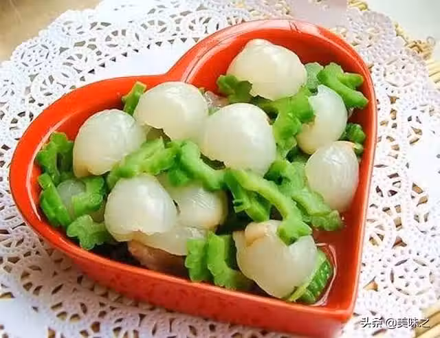 苦瓜適量、荔枝適量、蜂蜜適量、白醋適量、鹽適量。