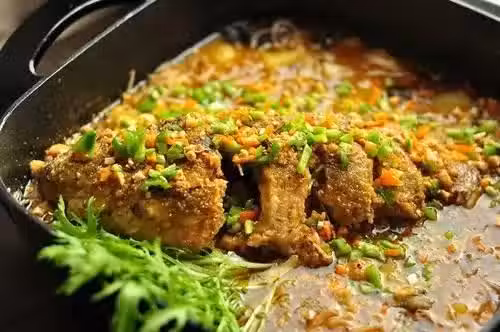 11)加入適量的鹽,煮沸後嘗一口,正確的時候把魚放在適當的位置。