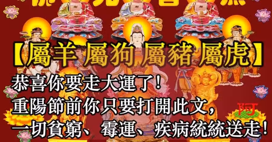 【屬羊 屬狗 屬豬 屬虎】恭喜你要走大運了!重陽節前你只要打開此文,一切貧窮、霉運、疾病統統送走!
