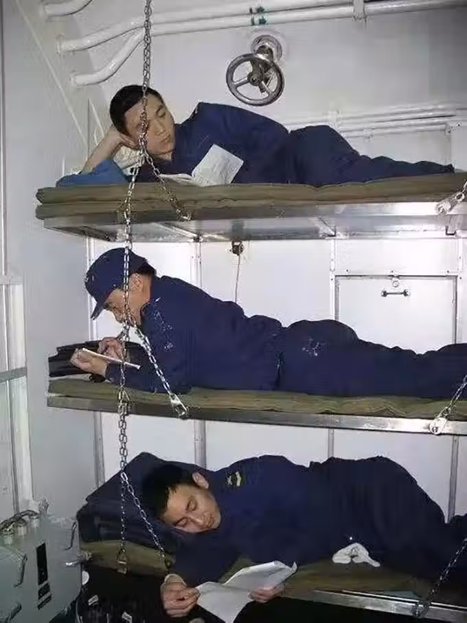 人一多身上的氣味就會散發出來,尤其是潛艇這種內部設備多,發熱量大的裝備,室內溫度一般維持在30℃。如果是在航行中,溫度動不動就是40度往上飆。在沒有檢查的時候,官兵們往往都是光著膀子執行任務。