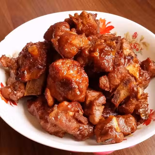 鍋里放一點油,煸炒薑絲,出香味後放骨頭,倒入料酒,炒出香味,然後把骨頭推到鍋子一邊,下黃豆醬炒香,加冰糖,生抽老抽,八角花椒,將調料和骨頭炒勻後加入開水,加入白醋1大勺,大火燉40分鐘以上,嘗一下味道以及酥爛程度,最後收汁即可