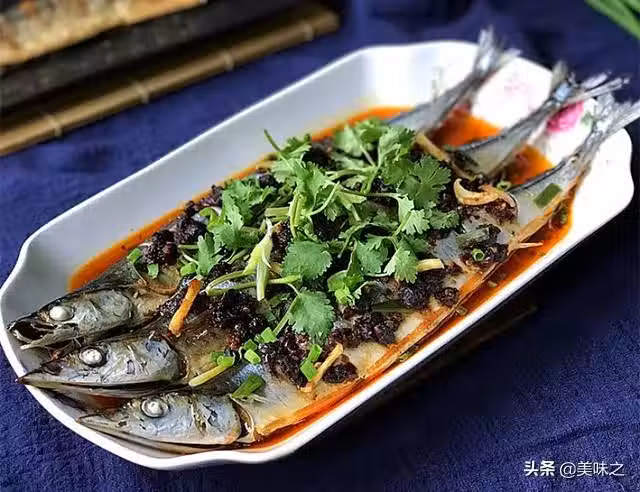 香菜1根、秋刀魚4條、豆豉辣醬3湯匙、食用油適量、魚露適量、料酒適量、香蔥3根、生薑6片。