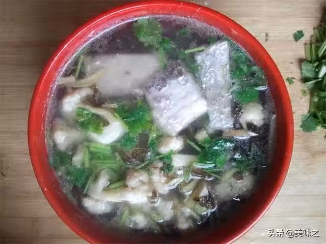 6、放入帶魚,下點料酒,下味精,鹽,多下點醋,香菜,起鍋。