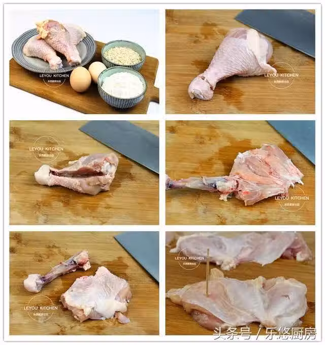 第六步:把雞皮撕下去,然後用牙籤在雞肉上紮一些小孔,如圖。(這樣更便於入味。)