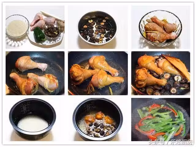 第八步:將鍋中的雞腿和香菇一起倒入電飯煲中,再加入適量的清水(平時蒸飯放多少水,現在就放多少)。然後選擇電飯煲中的煮飯功能即可。