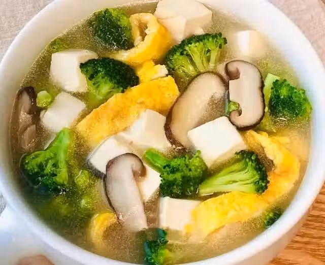 (1)西蘭花洗凈掰成小朵,嫩豆腐沖洗一下切塊,香菇洗凈切片。
