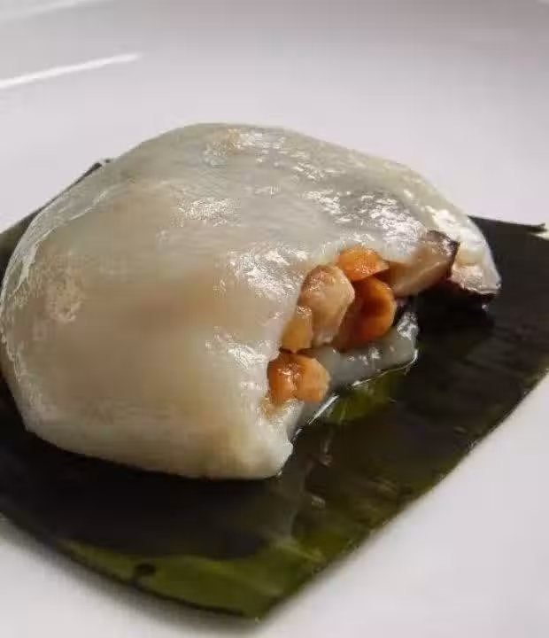 4、新鮮的蕉葉洗凈,分成小份,用開水燙一下,抹油備用