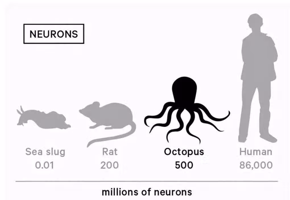 章魚雖然在海洋里屬於極其聰明的動物,但是它們缺乏知識代際傳遞,相比陸地上的社會性動物,智商還是不足。