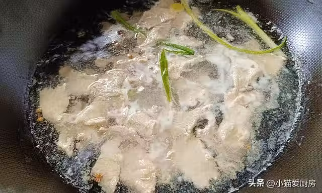 【步驟十】:把煮熟的肉片撈出來控干水分,放入腐竹裡邊,同時放入香菜,放入兌好的調料汁。然後用手抓拌均勻,裝盤成菜。