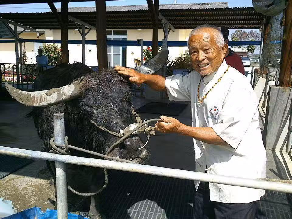 這頭水牛叫牛牛,是一個叫梁平的老爺爺的好幫手。從小開始,這頭牛就為他們一家人工作,幫著家裡做農活。有了牛牛的幫助,老爺爺種田耕地才更加輕松,不然只用人力的話,工作時間得增加好幾倍。就是這樣一直勤勤懇懇的牛,一直跟著老爺爺工作了26年。