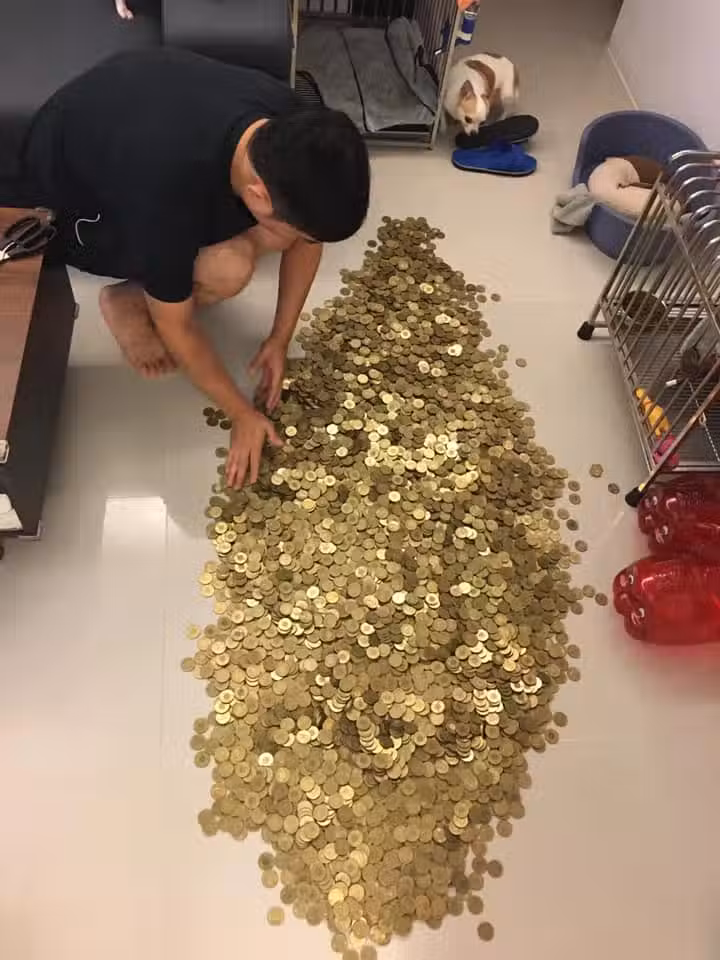 宰豬公救經濟!存4年硬幣「灑出來變黃金地毯」 結算「50公斤私房錢」網嗨:可以付頭期款