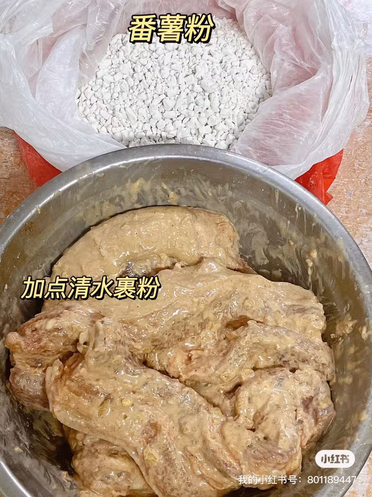 南乳汁、五香粉、胡椒粉、蒜末、耗油、生抽、白糖、番薯粉