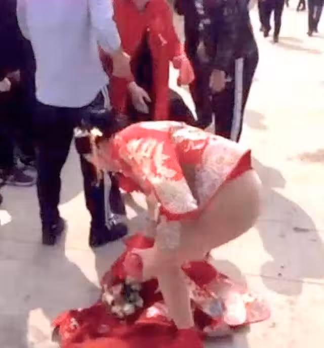 婚禮都還沒開始,新娘裙子就被扯爛了,已經不是開玩笑,甚至是有些低俗。更讓新娘氣憤的是,未婚夫在過程中居然搞失蹤,鬧了半天,不見新郎出來保護新娘,讓女方覺得很不被尊重,一氣之下把被撕爛的裙子扔了,精心打扮的頭飾也全拆了,轉頭走人,婚自然就不結了。