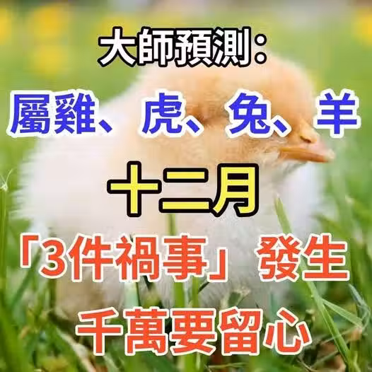 大師預測:「屬雞、屬虎、屬兔、屬羊人」 十二月 有「3件禍事」發生:千萬要留心