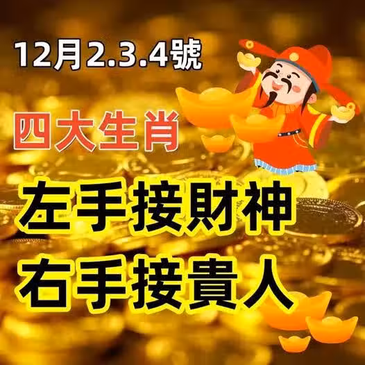 12月2.3.4號左手接財神,右手接貴人的四大生肖