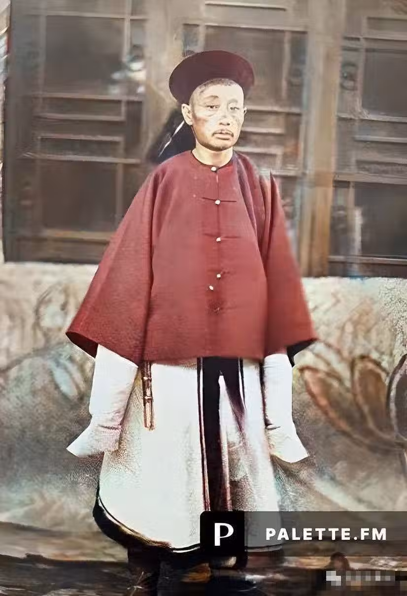 照片中的這位大內侍衛,他的眼角至太陽穴位置明顯凸鼓出來,這是他內家功力深厚的象徵。他的眼神深邃而沉穩,仿佛能看穿一切虛妄。他的身姿筆直如松,透露出一種難以言喻的威嚴和自信。