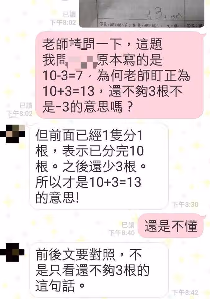 老師的解釋,也沒有安撫到眾多網友,大家紛紛笑說:「第一眼看上去,就覺得是要分給10隻猴子,但是只能分7隻啊!」、「這根本是考國文吧!」、「覺得這個語意兩個都對,現在數學幾乎不是考數學,是考驗語文能力啊~」