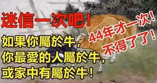 如果你屬於牛,你最愛的人屬於牛,或家中有屬於牛,44年才一次,不得了了