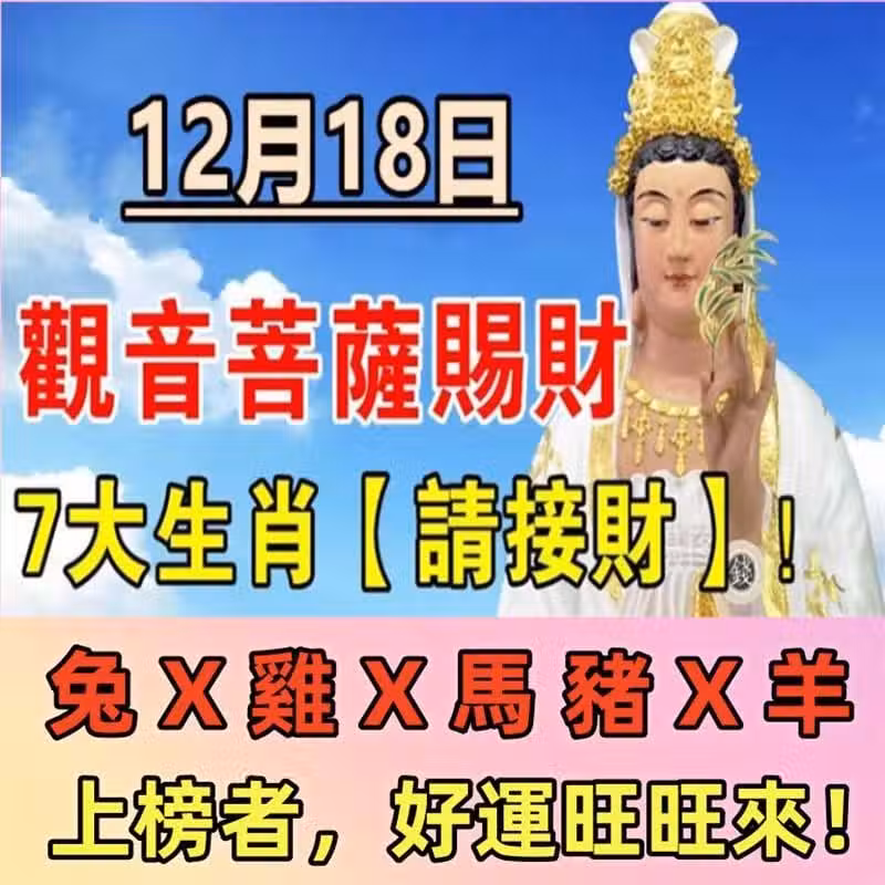 12月18日觀音菩薩賜財,七大生肖(請接財)