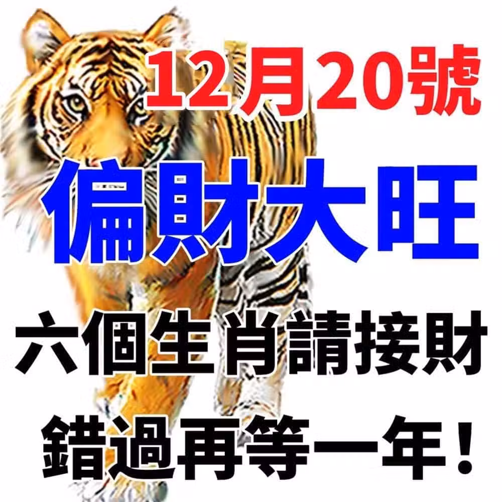 12月20號偏財大旺,六個生肖請接財!錯過再等一年!