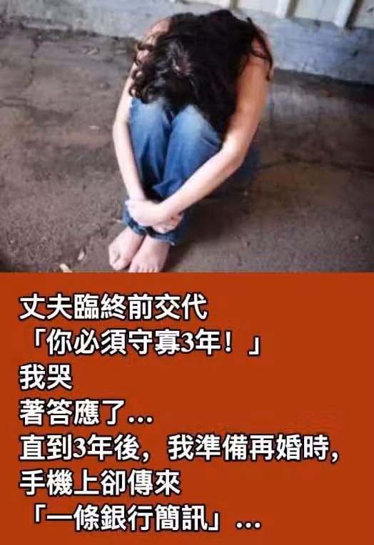 丈夫臨終前交代「你必須守寡3年!」我哭著答應了… 直到3年後,我準備再婚時,手機上卻傳來「一條銀行簡訊」…