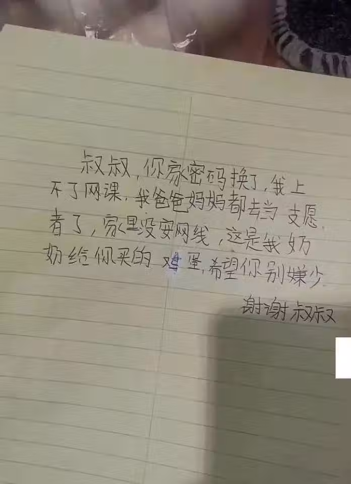 這一紙條瞬間讓男子為自己改密碼的行為感到懊悔不已,還沒了解對方的困境,差點害了孩子無法求學。