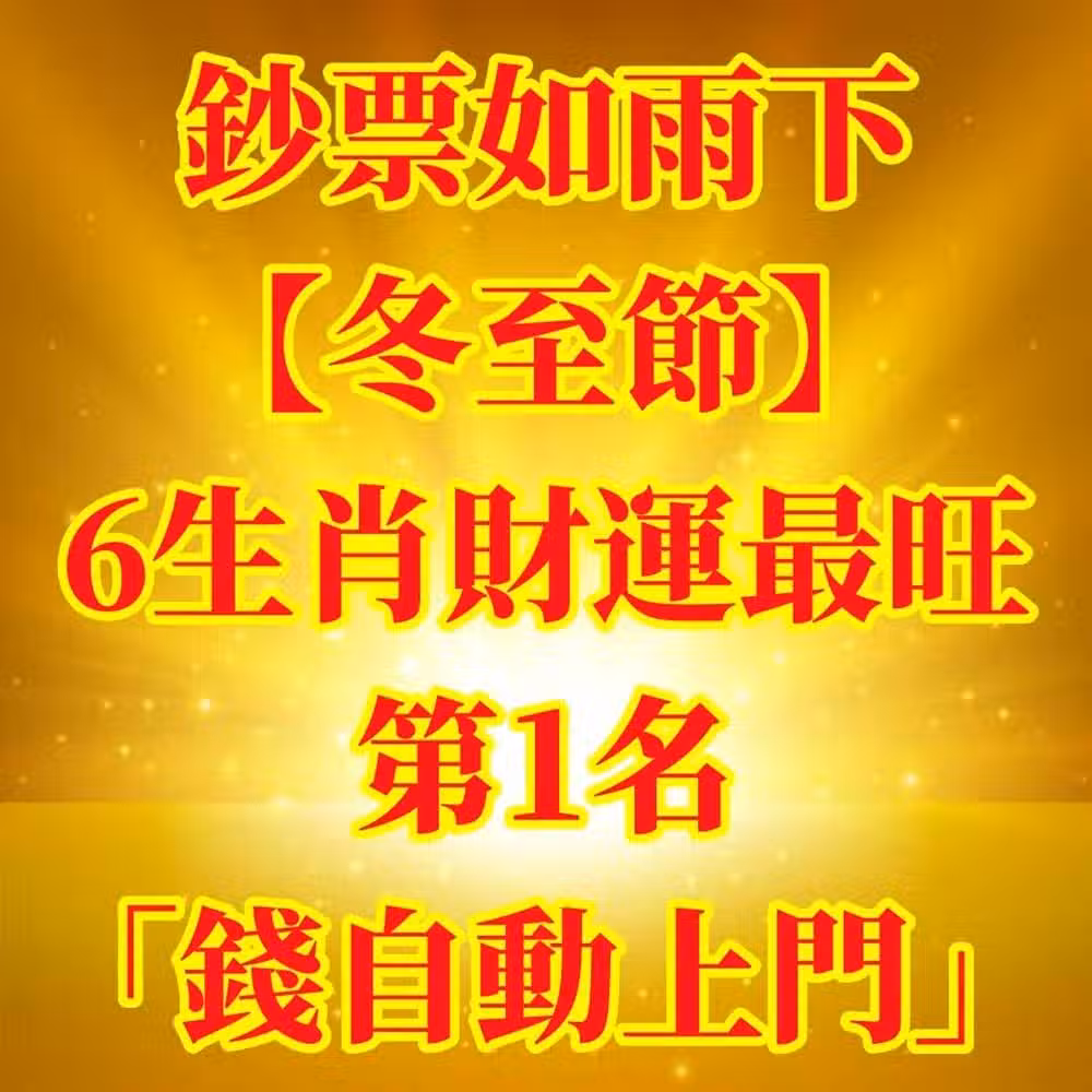 鈔票如雨下!【冬至節】6生肖財運最旺,第1名「錢自動上門」