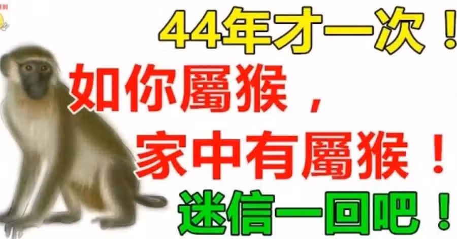 如果你不是屬猴,你最愛的人屬猴,或家中有屬猴,45年才一次!迷信一回吧!