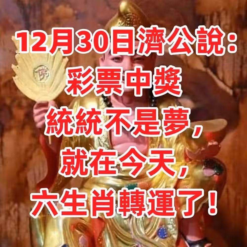 12月30日濟公說:彩票中獎統統不是夢,就在今天六生肖轉運了!